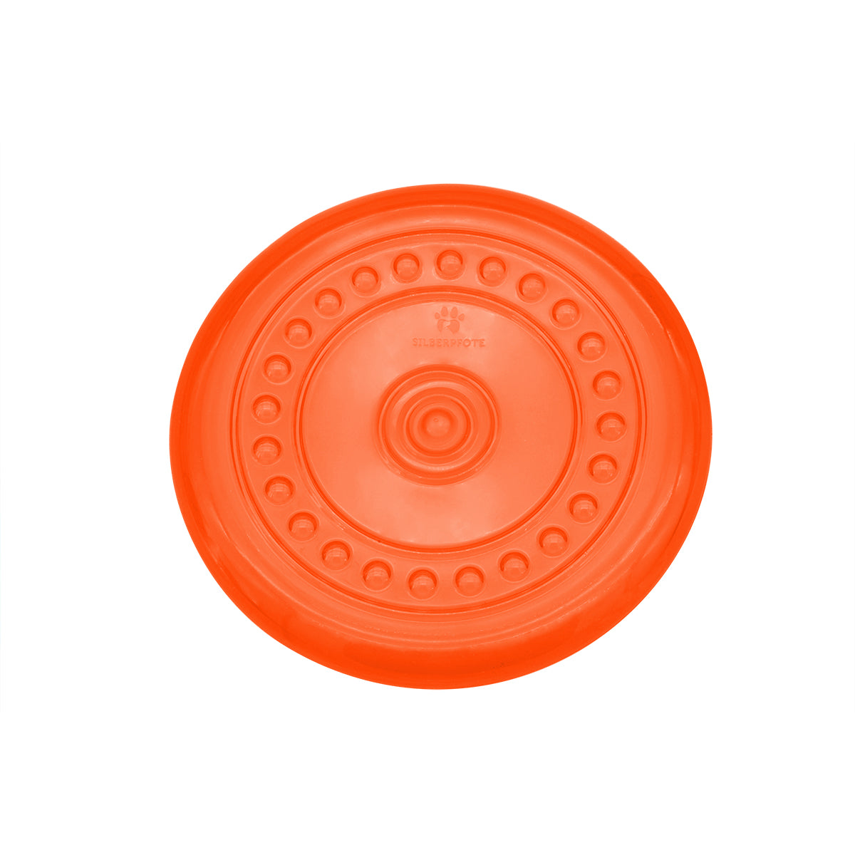 Premium-TPR – Unsere Hundewurfscheibe besteht aus langlebigem, flexiblem Thermoplastischem Gummi. Sie ist weich, bruchsicher und schonend zu Zähnen und Zahnfleisch.